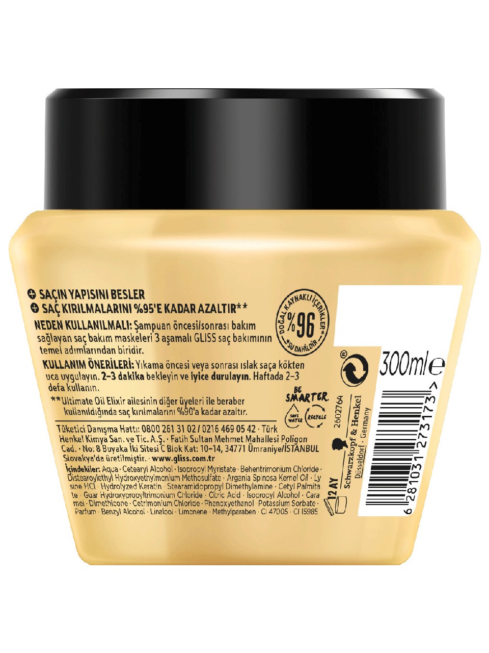 ویژگیهای اصلی ماسک مو Besleyici Bakim