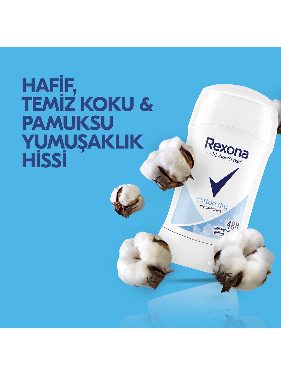 مام صابونی زنانه Rexona Cotton Dry با الهام از نرمی و پاکیزگی پارچه نخی، طراحی شده تا حس تازگی، خشکی و طراوت را در تمام طول روز برای شما فراهم کند. این محصول با بهره‌گیری از فناوری ضد تعریق پیشرفته، شما را در برابر تعریق و بوی ناخوشایند محافظت می‌کند و در عین حال، رایحه‌ای خنک و سبک از خود به جا می‌گذارد.