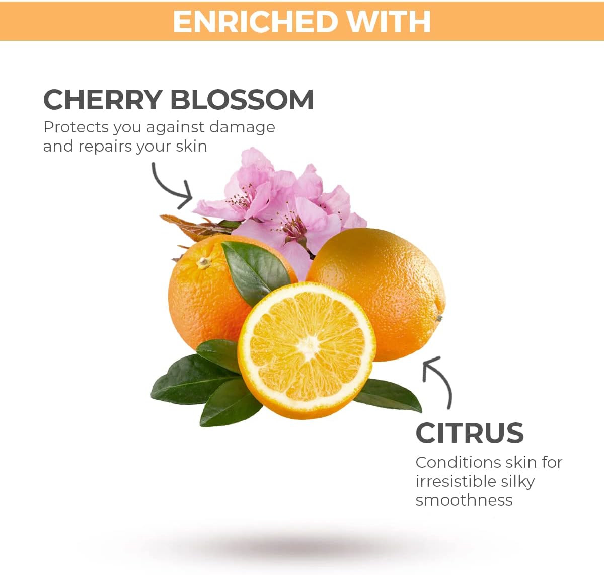 رایحهی مرکبات و شکوفههای گیلاس در این شامپو بدن ترکیبی از نشاط و لطافت است. رایحه مرکبات مانند لیمو و پرتقال با خاصیت انرژیبخش خود، حس تازگی و سرزندگی را به پوست و ذهن القا میکند. از سوی دیگر، عطر ملایم و شیرین شکوفههای گیلاس، حس زنانگی، آرامش و لطافت را به همراه دارد. این ترکیب منحصربهفرد برای استفاده در آغاز یا پایان روز بسیار مناسب است و حس خوبی به شما میدهد.